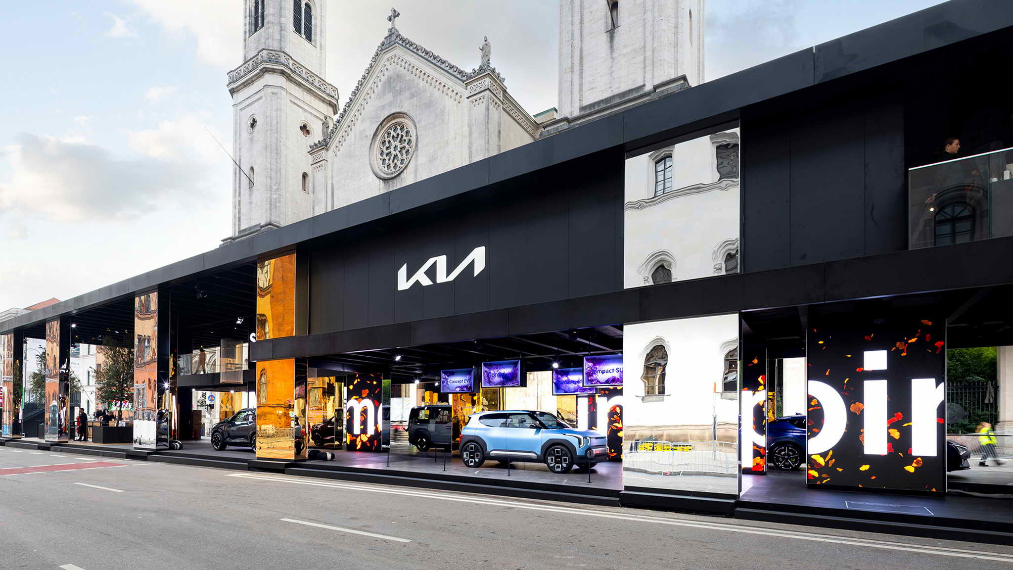 - Az „Inspiráció ablakai” kiállítás tükrös oszlopokkal és zónákra osztott kijelzőkkel ellátott innovatív környezetbe meríti a látogatókat, zökkenőmentesen integrálva a Kia elektromos járműkínálatát a müncheni városképbe.